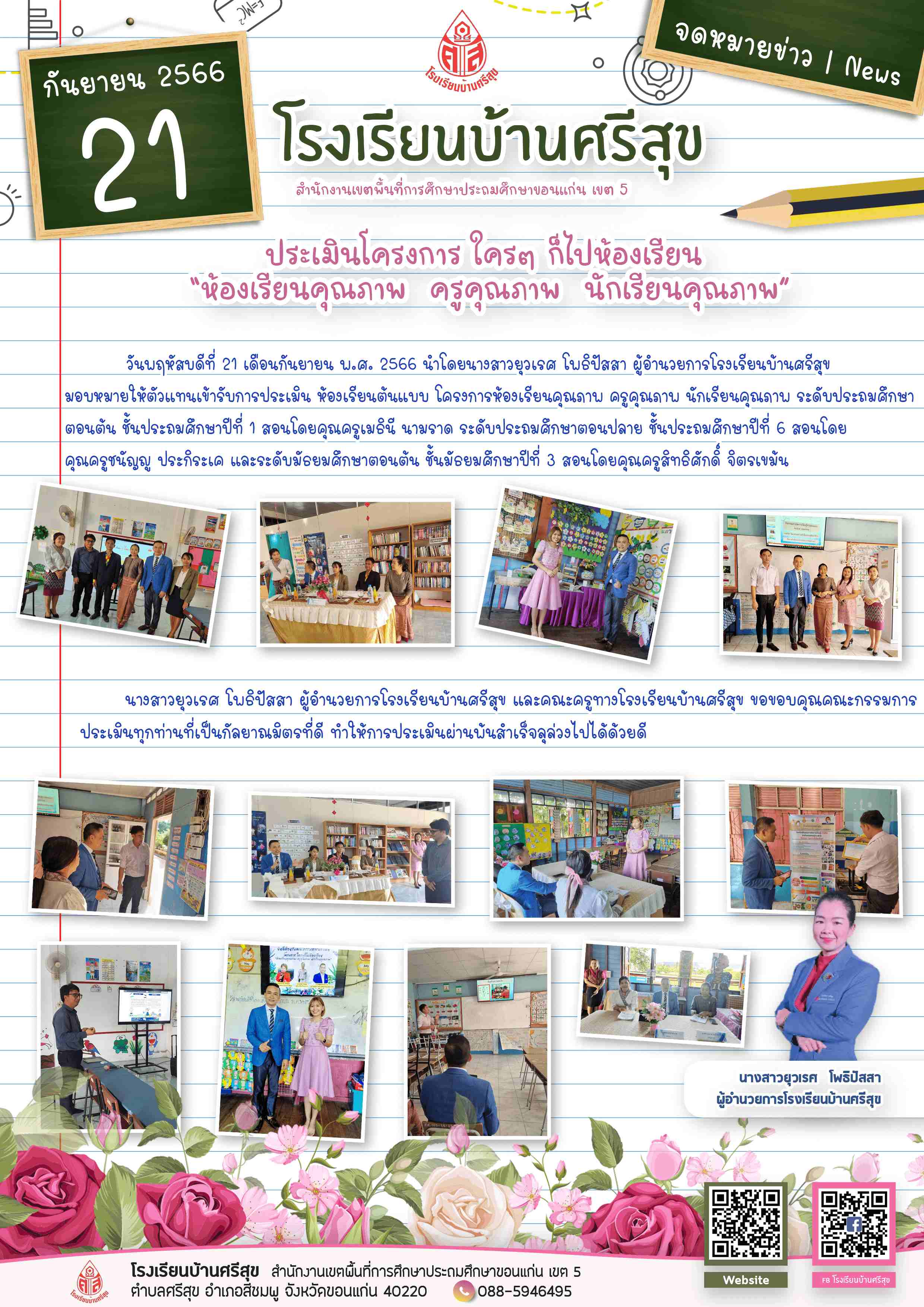 นางสาวยุวเรศ โพธิปัสสา ผู้อำนวยการโรงเรียนบ้านศรีสุข และคณะครูทางโรงเรียนบ้านศรีสุข ขอขอบคุณคณะกรรมการ